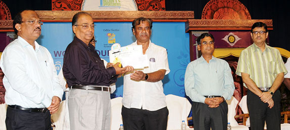 Biswajit Pattanaik receiving award from Shri Ashok Ch.Panda, Minister of Tourism, Govt. of Odisha, for the photograph titled “Traditional Culture” at Bhubaneswar on 27th September 2016.